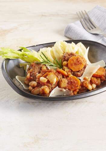 - 2 Intégrez le céleri, les carottes, la passata et 2 dl d’eau. Laissez mijoter 50 min. Assaisonnez de sel, de poivre et de romarin haché, puis incorporez les haricots blancs et prolongez la cuisson de 2 min.