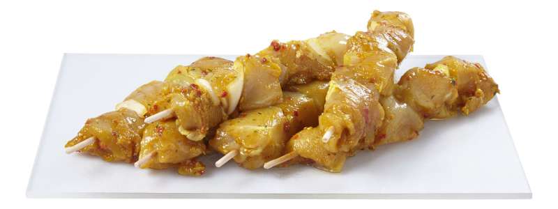 - Faites cuire la brochette de poulet marinée ± 5 min de chaque côté sur un barbecue à feu modéré.