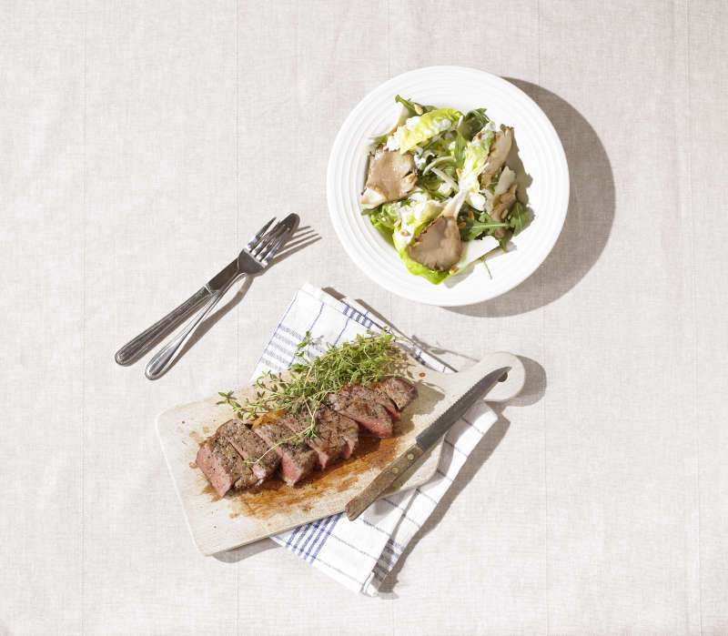 - Saisissez l’entrecôte ± 2 min de chaque côté sur un barbecue bien chaud. Remontez la grille et poursuivez la cuisson selon votre goût.