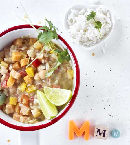 - 4 Laissez mijoter le curry ± 30 min à feu doux et à couvert. Remuez de temps en temps.