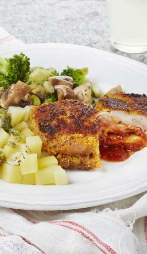 Escalope milanaise et poêlée de brocoli aux champignons aux fines herbes