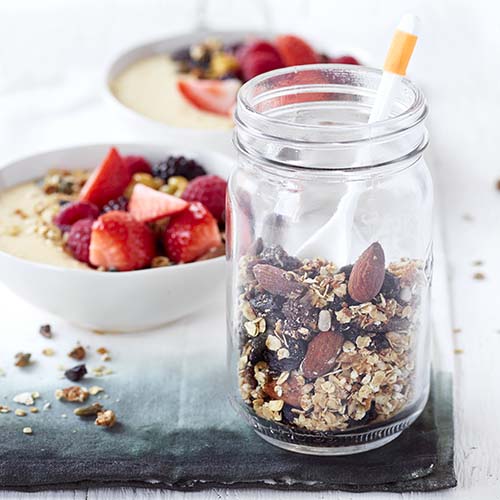 – Imaginez votre propre recette de granola avec ce qu’il vous reste dans l’armoire à provisions. Fruits secs, fruits séchés, graines... vous combinez au choix.