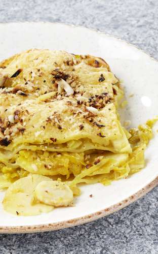 Lasagne de panais aux poireaux et noisettes