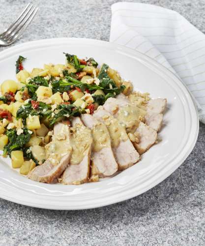 Mignonnette de porc, sauce au Cambozola et poêlée aux épinards