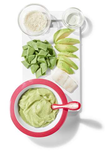 - 3 Ajoutez la chair de l’avocat et mixez. Intégrez l’huile végétale.