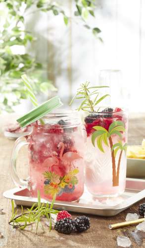 3 Remplissez un verre de glace pilée jusqu’aux 2/3. Complétez d’eau pétillante et de coulis de fruits.