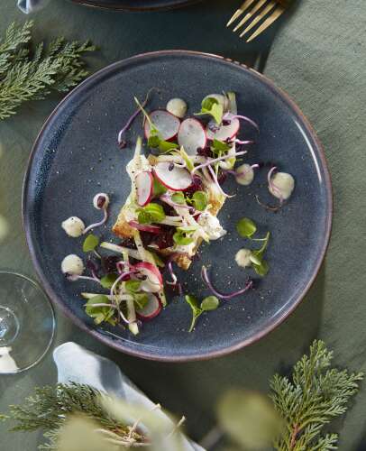 Toast de panais à la betterave rouge, au fromage frais et au raifort
