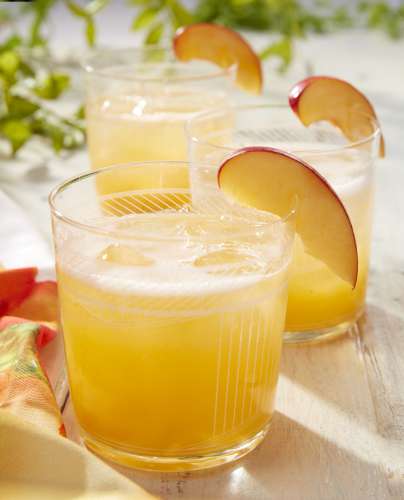 - 1 Mixez le quartier de pêche avec le jus de citron
