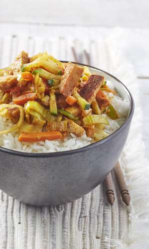 Wok de lanières végétariennes aux légumes thaïs